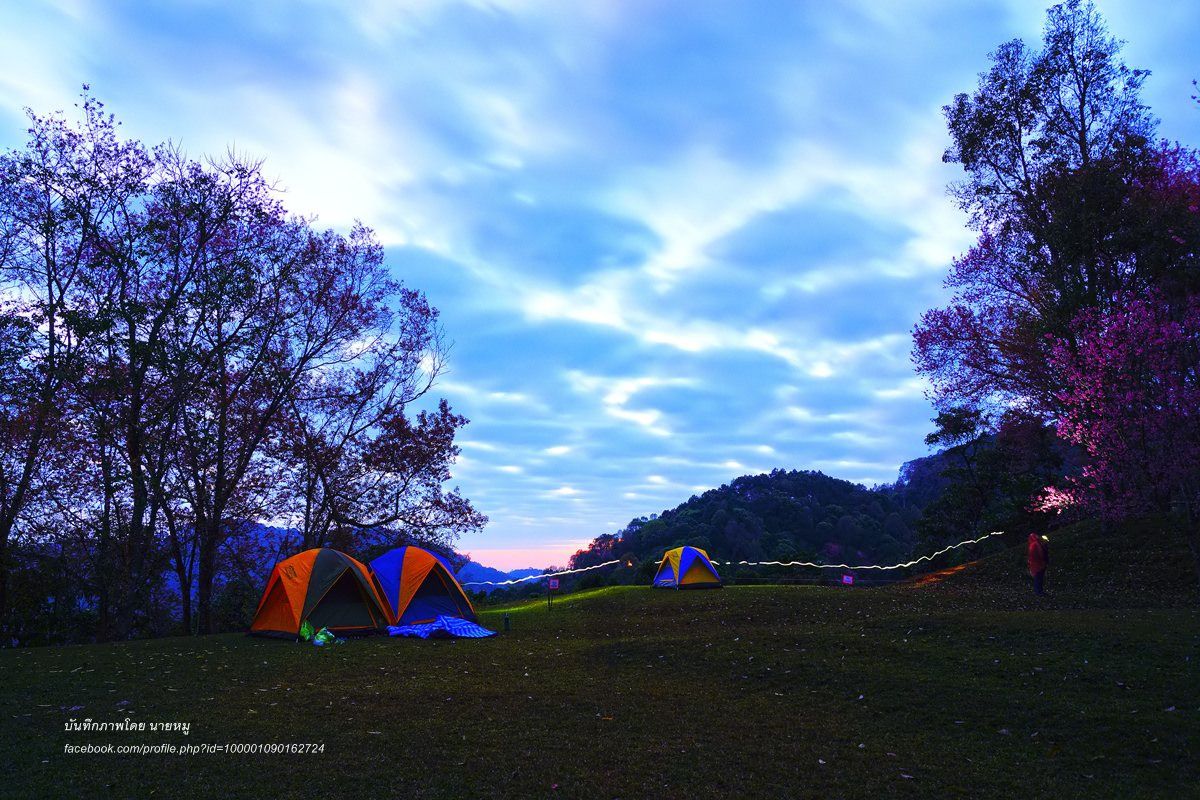 บนลานมีกางสี่เต้นท์ ด้านล่างลานจอกรถมีผมเต้นท์เดียวครับ น้าอาโกย