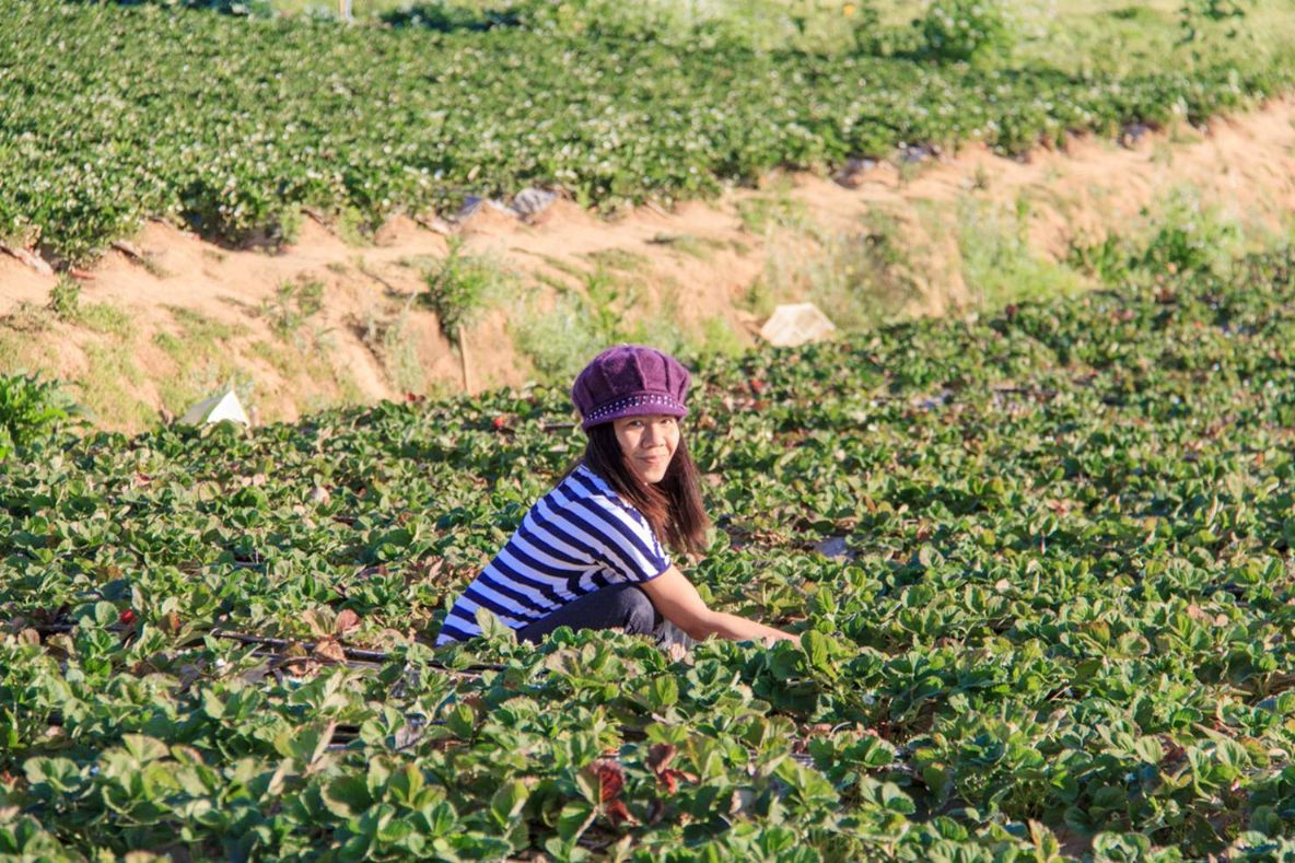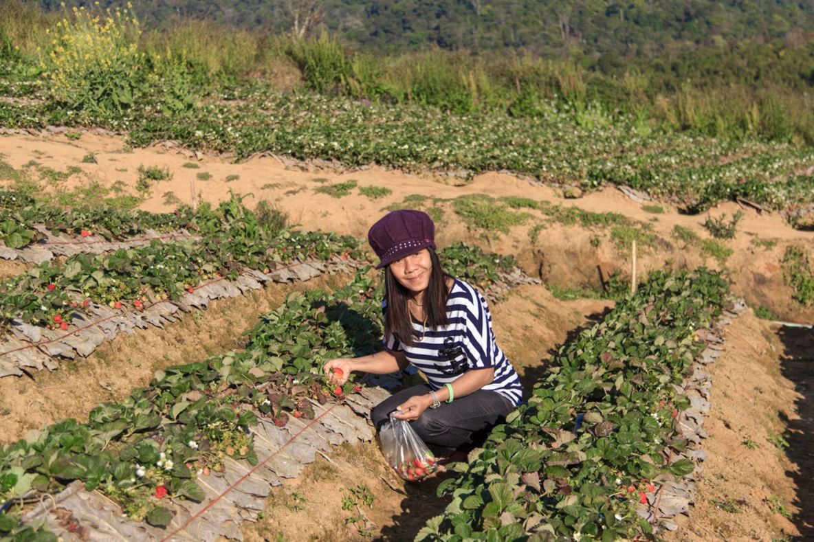 ไปเก็บสตอเบอรีหลังที่พักกัน