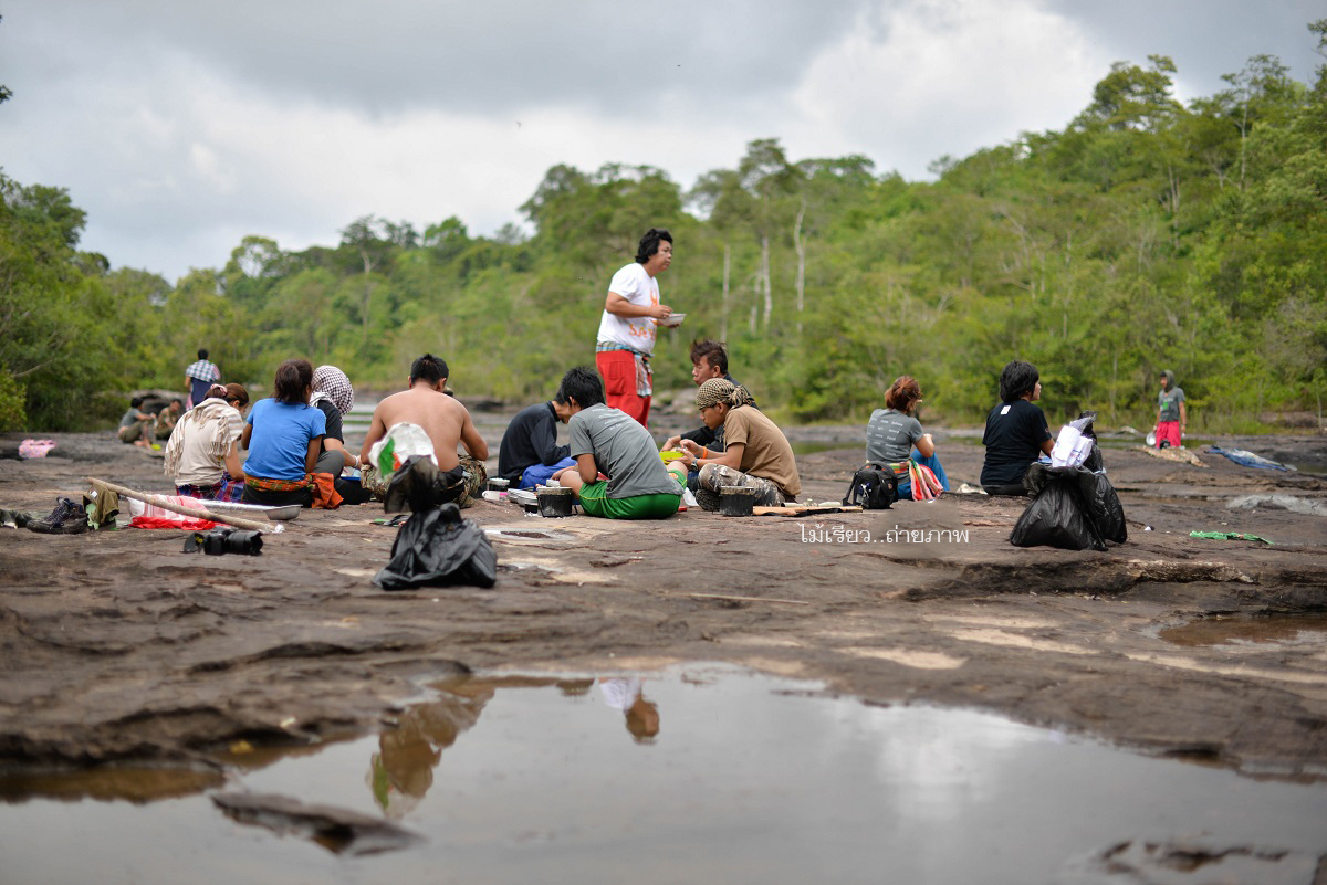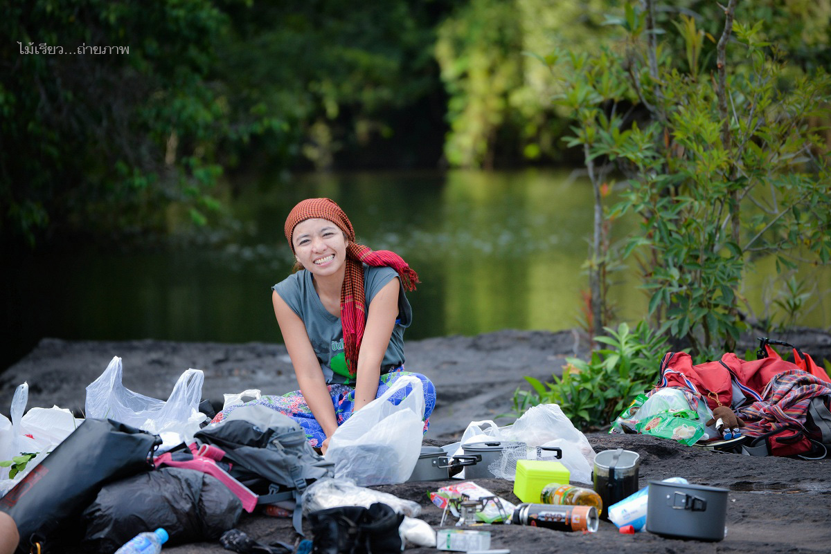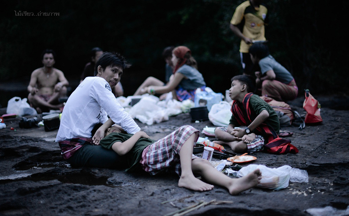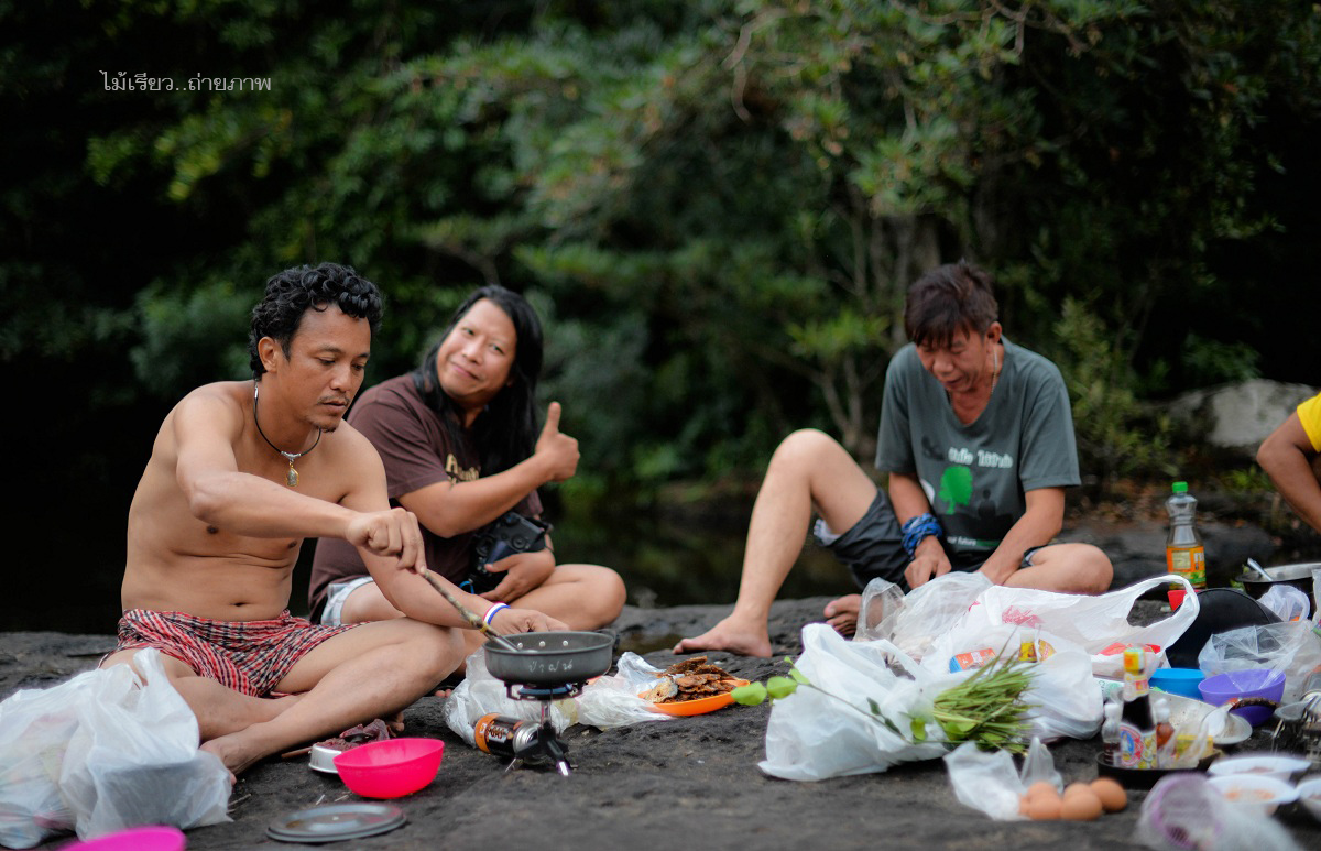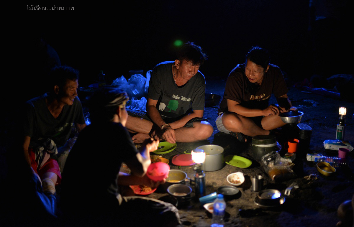 วงข้าวเย็นกลางแก่งยาว เทือกเขากำแพง อุทยานแห่งชาติเขาใหญ่ อบอวนไปด้วยไออุ่นของมิตรภาพ มีเรื่องเล่ามากมายจากการเดินป่าจากทั่วสารทิศของประเทศไทย ในค่ำคืนนี้หวังว่าทุกคนคงจะหลับฝันดี มีเสียงเพลงจากธรรมชาติขับกล่อม เสียงของสายน้ำกระทบแก่งหิน เสียงของจั๊กจั่น เสียงหรีดเรไร..