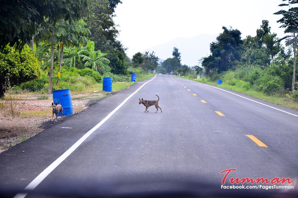 รถน้อยแทบไม่มีรถสวน เลยทำให้เจ้าถิ่นมานอนอาบแดดบนถนน ตลอดทาง