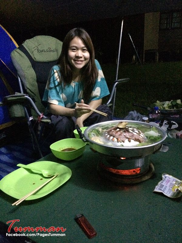 บรรยากาศค่ำคืนหน้าเต้นท์ อบอวนด้วยควันเมนูนี้