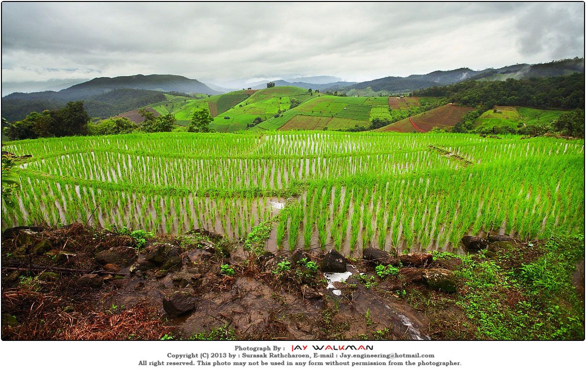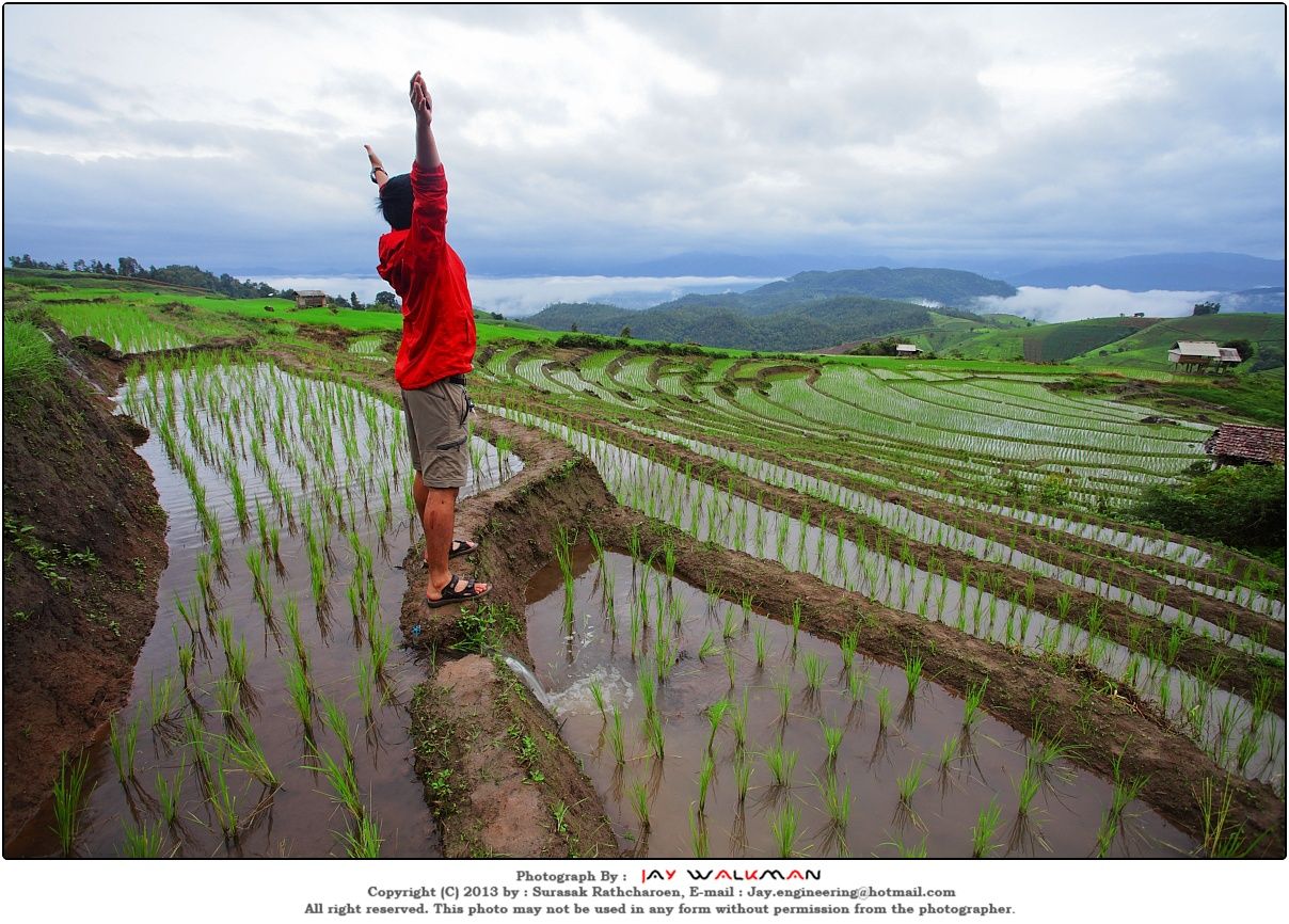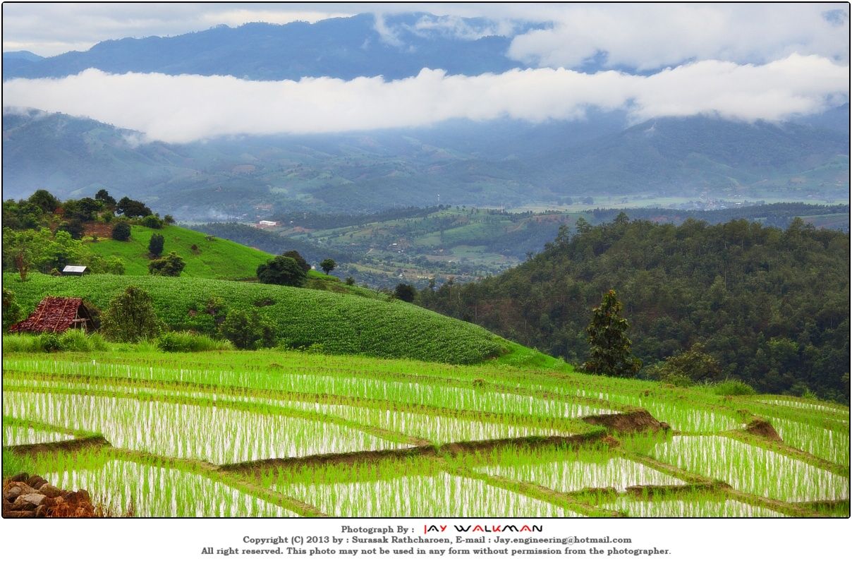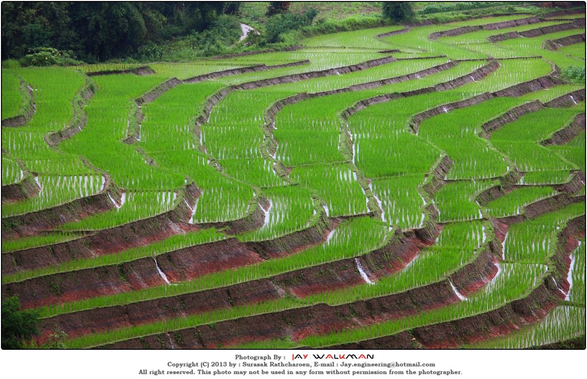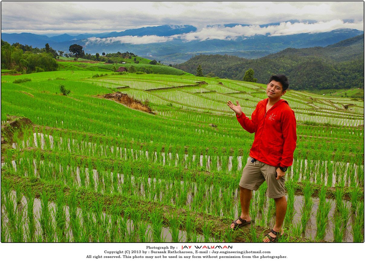 จริงๆแล้วการถ่ายนาขั้นบันไดสวยๆนี้ต้องถ่ายจากมุมสูงๆ และหันมุมออกข้างๆถึงจะสวยถึงจะมองออกมาเป็นขั้นๆ แต่นี้ผมยืนอยู่ฝั่งเดียวกับนาขั้นบรรไดพอดี เลยต้องหาฉากหน้ามาเสริมให้กับภาพซักหน่อย