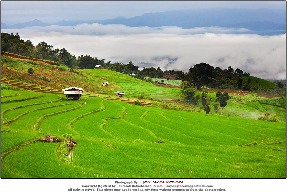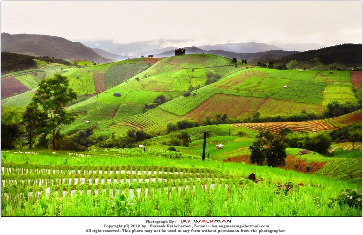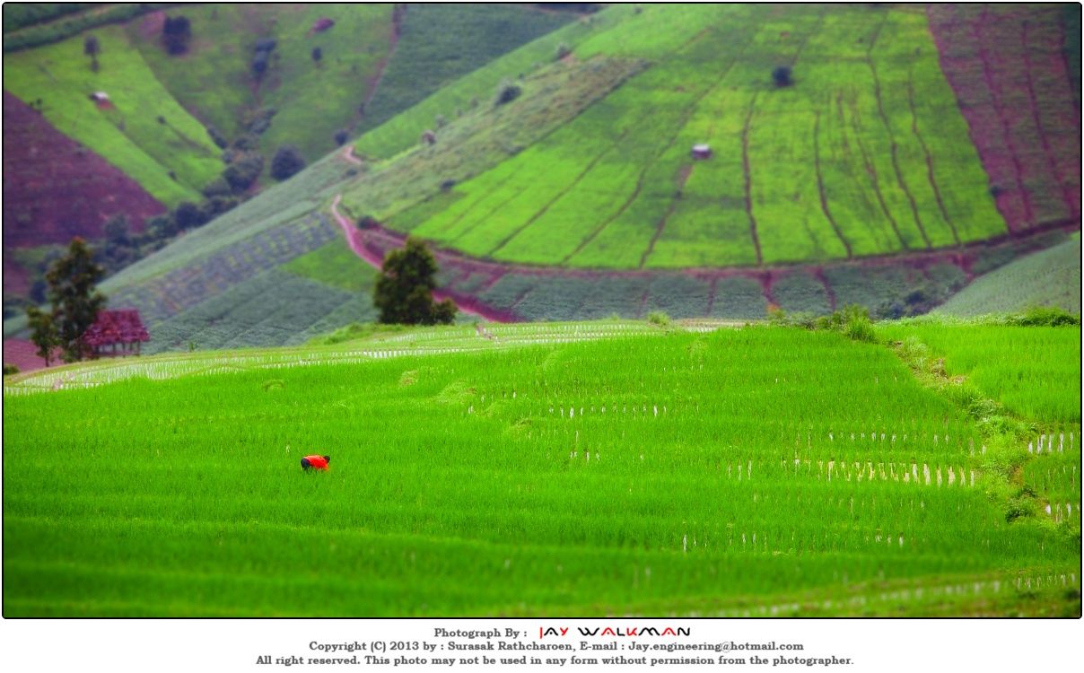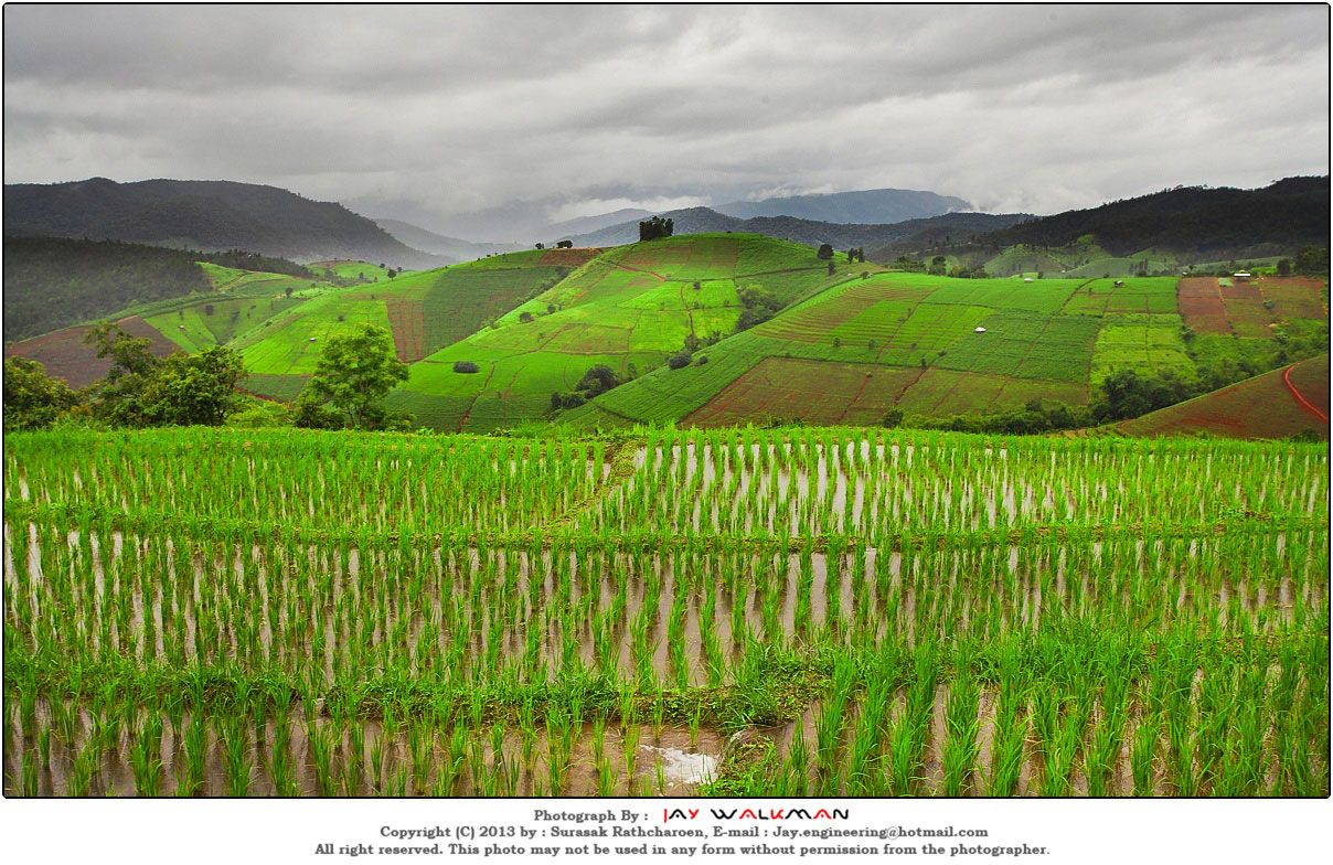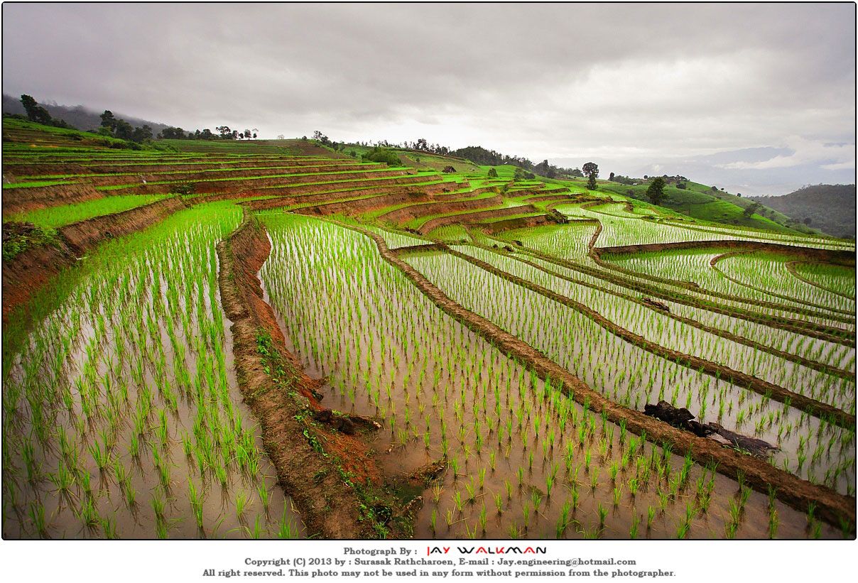 จริงๆแล้วการถ่ายนาขั้นบันไดสวยๆนี้ต้องถ่ายจากมุมสูงๆ และหันมุมออกข้างๆถึงจะสวยถึงจะมองออกมาเป็นขั้นๆ แต่นี้ผมยืนอยู่ฝั่งเดียวกับนาขั้นบรรไดพอดี เลยต้องหาฉากหน้ามาเสริมให้กับภาพซักหน่อย
