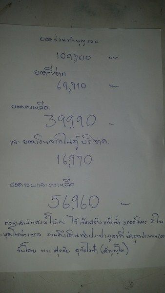 พระอาจารย์ ศุภชัย รับมอบปัจจัยเพื่อนำไปพัฒนาถาวรวัตถุที่สำนักสงฆ์ โข๊ะทะ ต่อไป