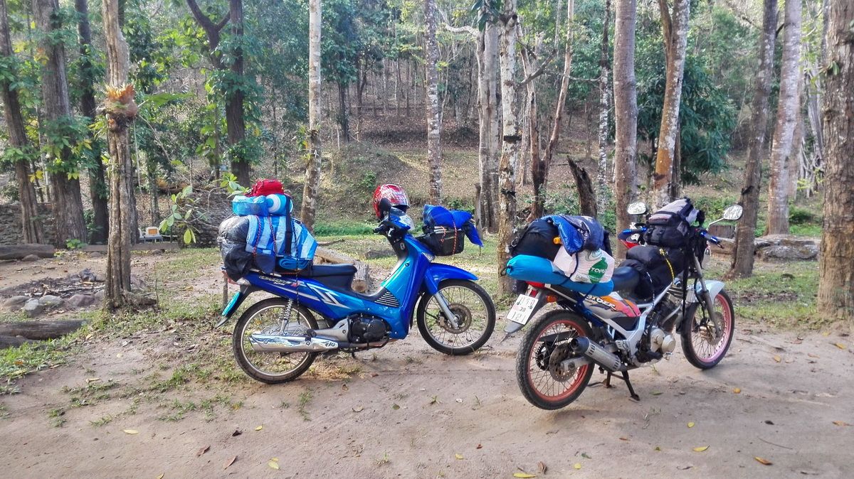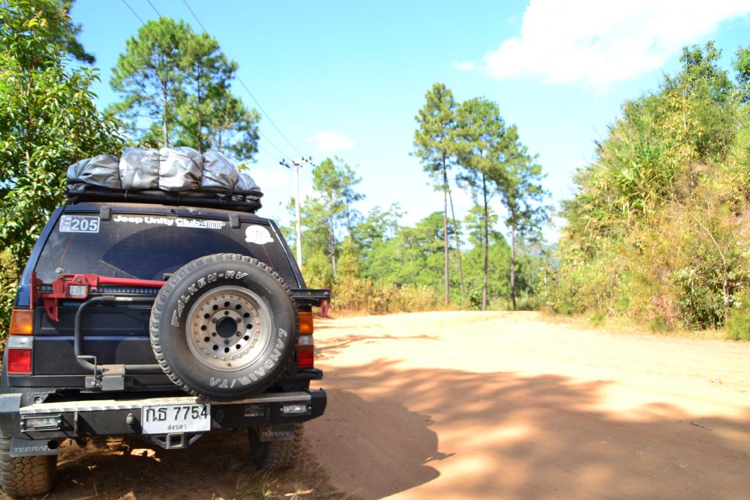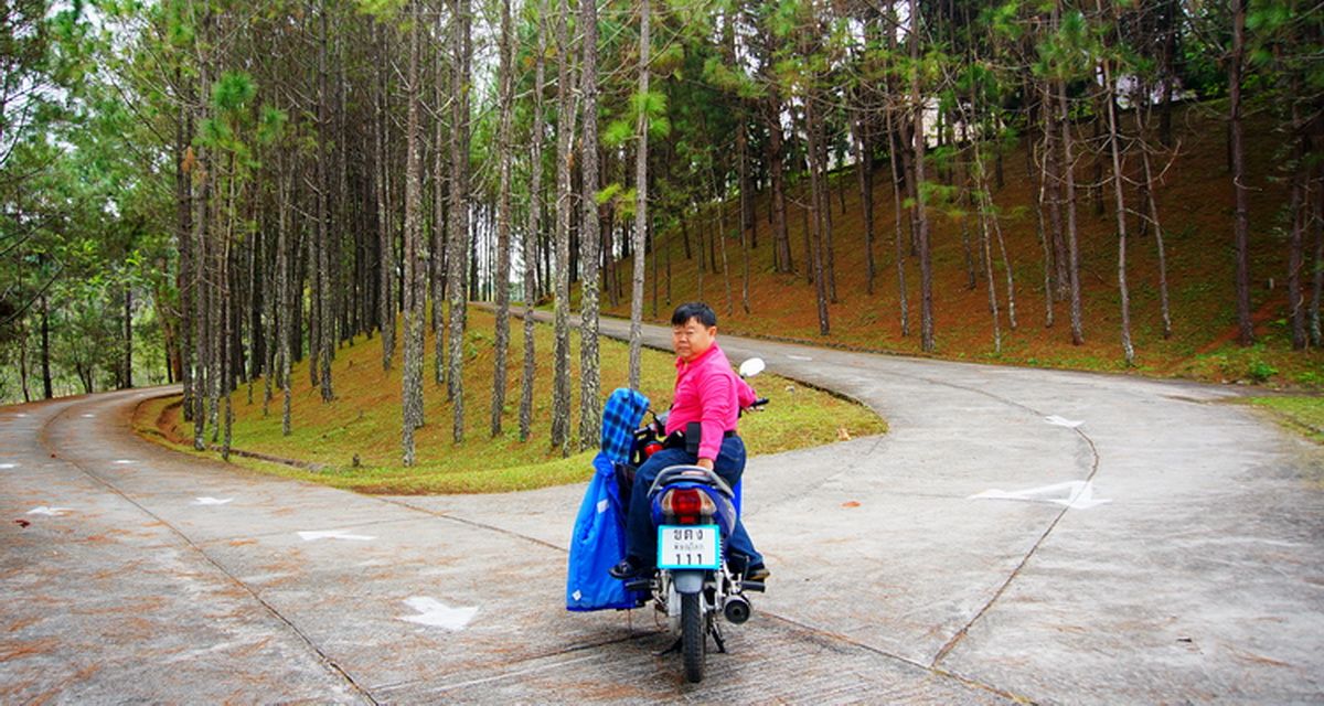 มโนภาพเส้นทาง นึกว่าทางคงจะเล็กลงเรื่อย ๆ ที่ไหนได้ วิ่งไปจนสุดทางราดยางก็ต่อด้วยลูกรังเลย แต่ความกว้างของถนนเท่ากัน มีแต่หินลอย และร่อง แต่ก็ไม่เลวร้ายเกินไป ที่อันตรายที่สุดคือ ช่วงที่ทำทางใหม่ รถบดกำลังบดทาง เรียบกริบ แต่ราดน้ำ ลื่นเป็นหนังหมูเลย ไอ้คนทำทาง เห็นพวกผมขี่มา รีบโบกไม้โบกมือให้เบา ๆ และให้ขี่ออกด้านริม ๆ ผมก็ทำตาม แต่ท้ายปัด ลื่นเป็นงูเลย รถน้าโหน่งก็เหมือนกัน ไอ้คนโบกรถก็ลุ้นว่า ผม 2 คันจะกลิ้งไหม คงจะมีรถมากลิ้งตรงนี้หลายคันแล้วหนะสิ ลุ้นจนลับสายตาเลยหละ แต่ไม่ได้กินผมหรอก เพราะเกร็งสุด ๆ เลี้ยงสุด ๆ อยู่แล้ว แต่ก็ต้องขอขอบคุณที่เตือนเรา ไม่งั้นมีหวังเจ็บตัวแน่ อีกจุดหนึ่งคือ เนินที่เป็นลานหิน ก้อนเท่าหัวลิง เป็นหินลื่น ๆ สีขาว ๆ แถมชันด้วย ต้องเลี้ยงด้วยเกียร์ 1 ขึ้น ระยะทางประมาณ 30 เมตร ถ้าเลี้ยงไม่ดี ก็ขึ้นไม่ไหว เพราะทุกไปหนักด้วย ถ้าเร่งเกิน ก็มีหวังชนหินยกล้อหงายท้องแน่ ๆ สุดท้ายก็ผ่านมาได้ด้วยดี