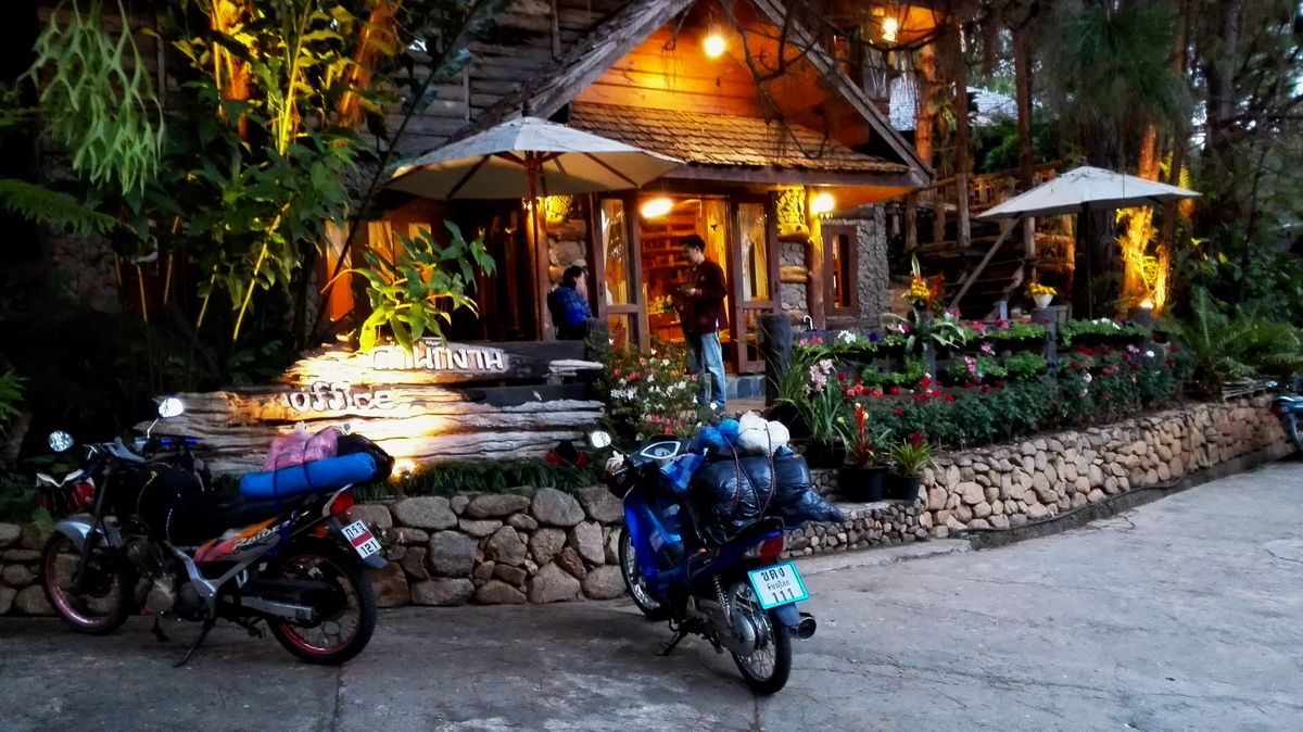 ถึงป่าสนบ้านวัดจันทร์ก็ประมาณ 6 โงเย็น มืดพอดี ติดต่อสถานที่เขาบอกว่ามีบ้านหลัง 800 แต่เต็มแล้ว เหลือ 1500 เอาไม๊ ม่ายอาว เอาเต้นท์มานอน เขาเก็บคนละ 50 บาท