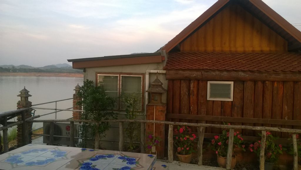 หลังดื่มด่ำกับบรรยากาศ กลางลำน้ำโขง มองดูนาฬิกาที่ข้อมือบอกเวลา 5โมงเย็นกว่าแล้ว สอบถามร้านค้าริมโขง แนะนำให้ขับรถเลาะริมน้ำไปเรื่อยๆ แล้วเราก็เจอแบบที่ต้องการ มันเหมาะเจาะกับช่วงเวลาที่เราไปกัน และเรื่องราคา ที่ยอมรับได้