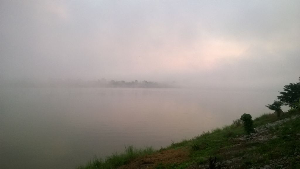 ตัดมายามเช้าผมตื่นก่อน ต้องบอกว่า อากาศเย็นมาก 10 กว่าองศา หมอกลงจัด เรียกได้ว่ามองไม่เห็นฝั่งลาวเลย นั่งรอ อุ่นอาหารจากเมื่อคืนก็แล้ว หมอกลงจัดมาก 21 ธค บางครั้งเห็นแสงไฟจากฝั่งนู้น อีกไม่ถึง 5 นาที มองไม่เห็นแล้ว น้องคนที่นี่เค้ากระซิบมาว่านู้นแหละ 9 โมงกว่าจะได้เห็นแสงตะวัน ช่วงนี้กล้องก็ทำงานสุดกำลังลากของ โนเกีย 540 มันแล้วคับ