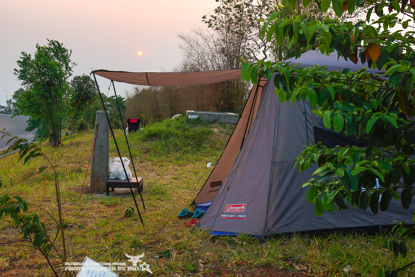 ตัดฉับมาตอนเช้า นายหมูโผล่ออกจากเต้น ก็เป็นแบบนี้ คว้ากล้องวิ่งไปถ่ายรูปก่อน อากาศเย็นสบายมากๆครับ นอนสบายมากเลย พอดีช่วงความกดอากาศสูง กำลังแรง จากประเทศจีน แผ่มาคลุมภาคอีสาน พอดี