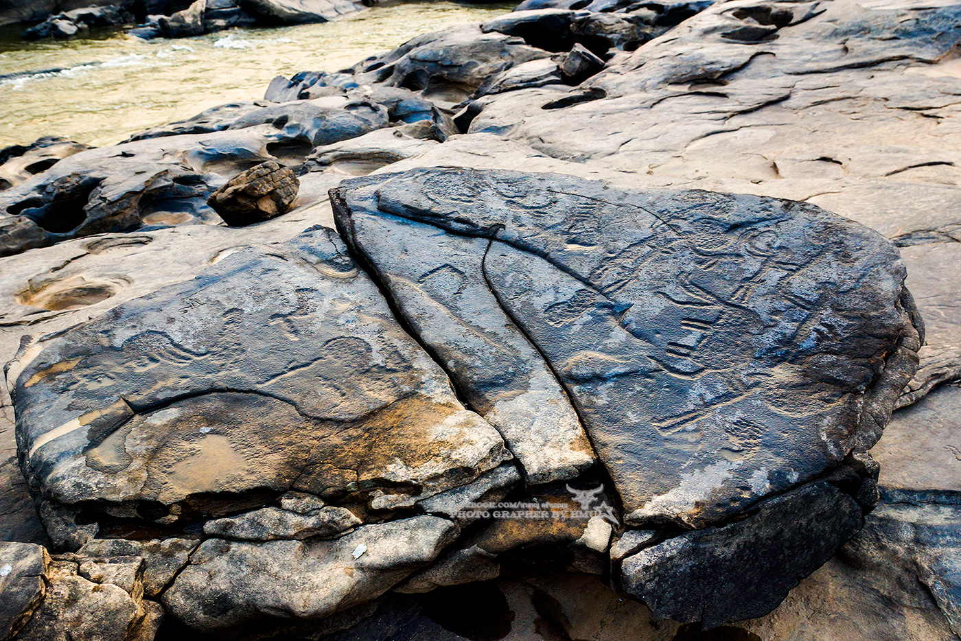 หนึ่งในรอยสลักโบราณ ทีมาให้เห็นทั่วไปที่นี่ น้องคนหาปลาไปเอาน้ำมาราดให้เราดูชั้ดๆ ก่อน ขอตัวไปหาปลาต่อ