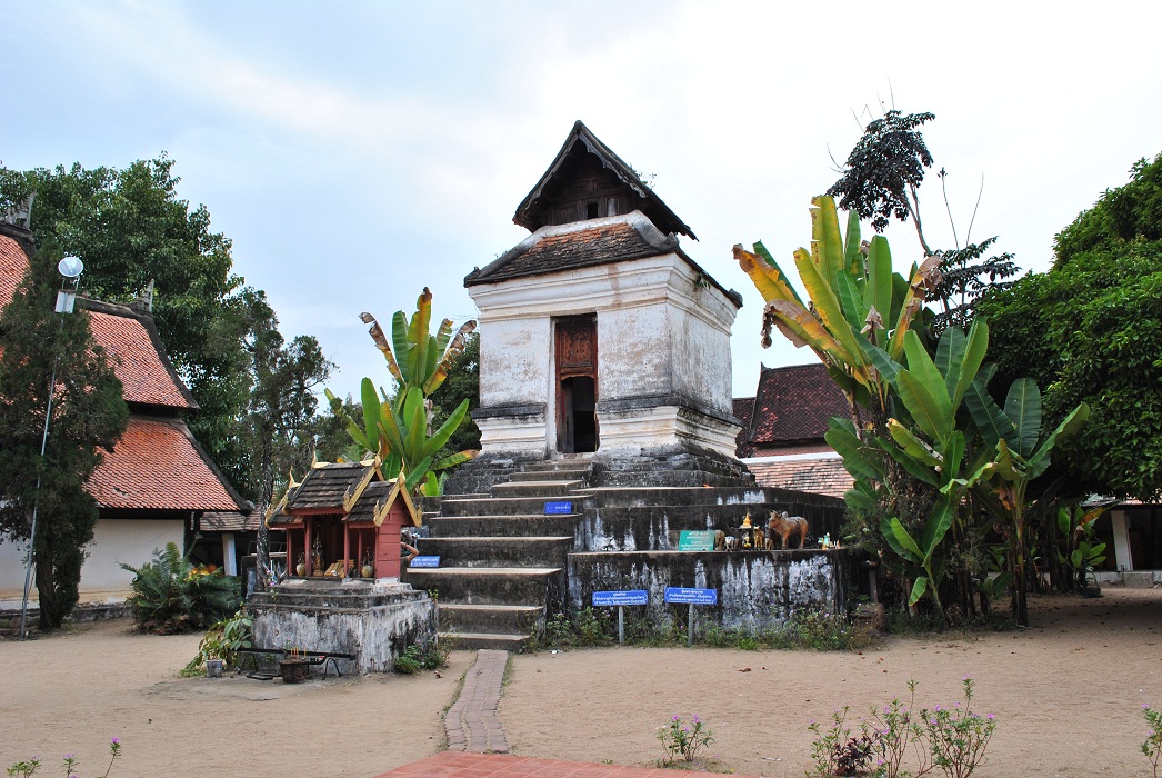 หอพระพุทธ เป็นสถาปัตยกรรมก่ออิฐทรงสี่เหลี่ยม ฐานเจดีย์สร้างครอบรอยพระพุทธบาทไว้ สร้างขึ้นสมัยเจ้าหาญแต่ท้อง เมื่อปี พ.ศ. ๑๙๙๒ ที่นี่ยังมีรูปเหมือน ที่เกิดจากหลักการเดียวกับการถ่ายภาพ ด้วยเหมือนกันครับ แต่ตรงจุดนี้ ห้าม สตรีขึ้น ครับเนื่องด้วยความเชื่อ ความศักดฺ์สิทธิ์ นั่นเอง แต่ก็ ให้ท่านชายขึ้นไปถ่ายภาพมาให้ชมได้อยู่คร้าบ