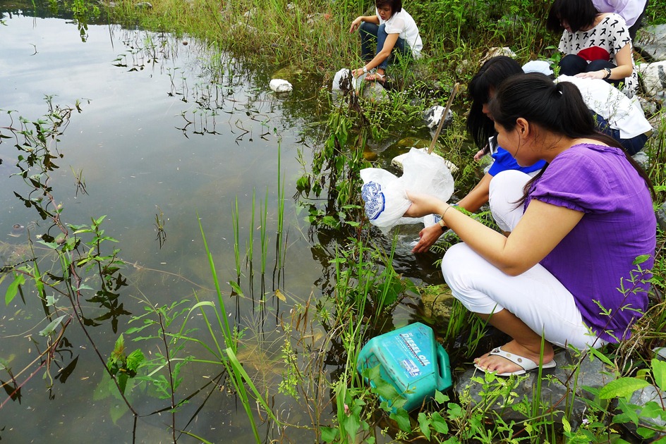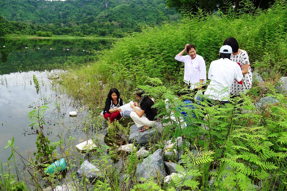 พี่แจงกับน้องไข่มุกเตรียมปล่อยปลา