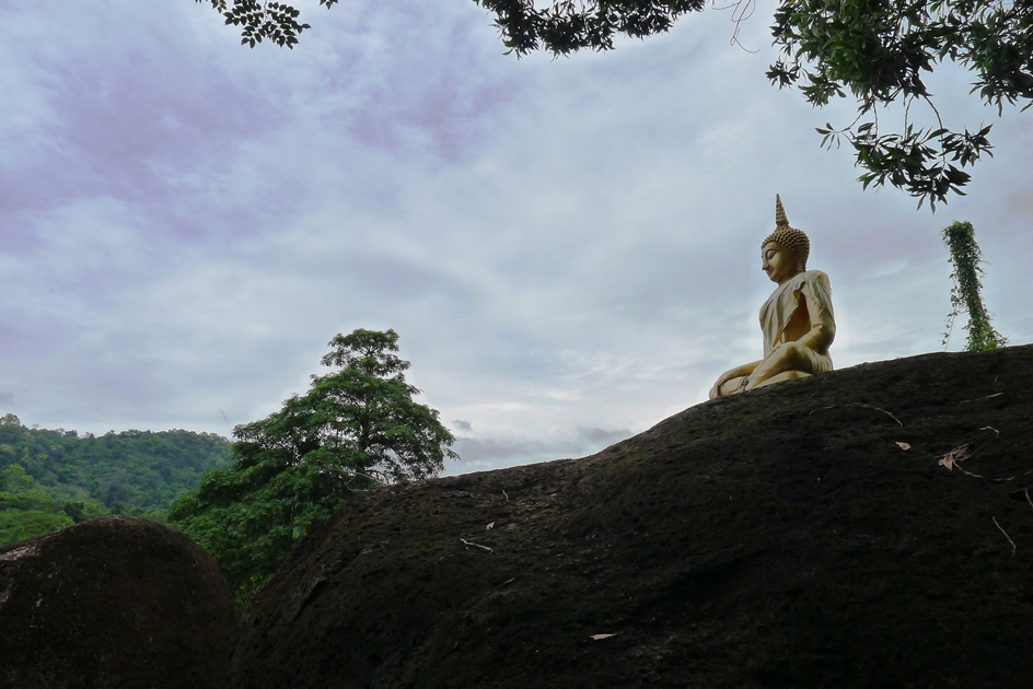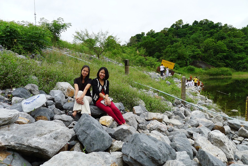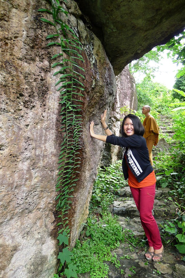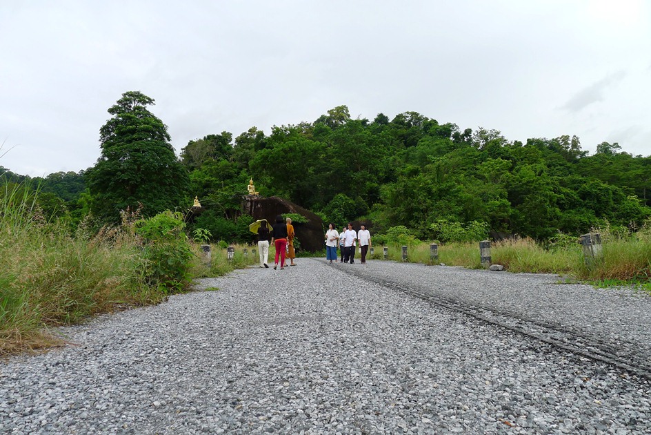 ทางเดินขึ้นไปกราบองค์พระบนโขดหิน