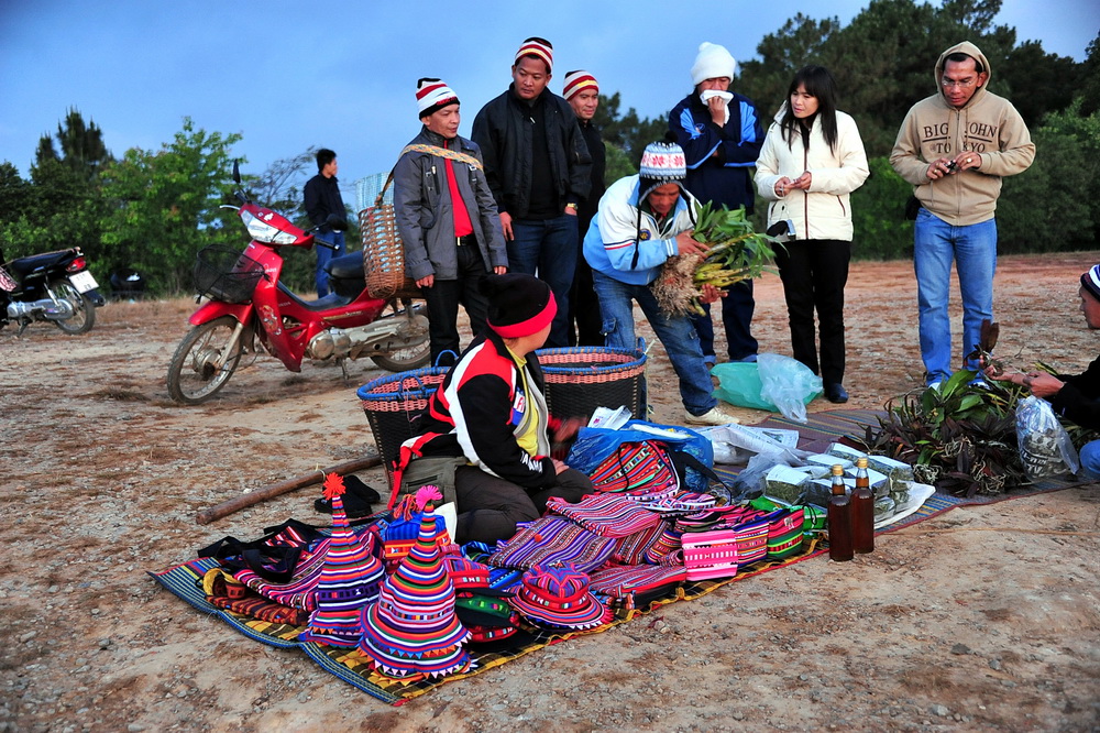 ลองประมาณดูด้วยสาตาน่าจะมีนักท่องเที่ยวประมาณหลัก ร้อยครับ จึงไม่น่าแปลกที่จะเห็นชุมชนเล็กที่ชาวเขาเอาของมาวางขายกัน ครับ