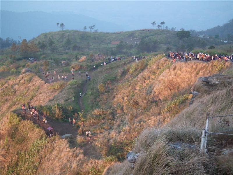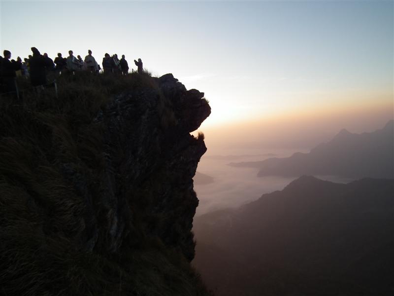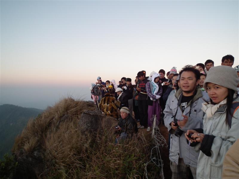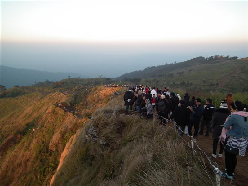 ขึ้นไปบนยอดภูชี้ฟ้าผู้คนมากมายมารอชมทะเลหมอก