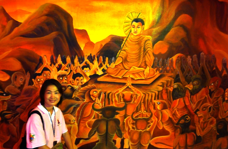 มีการจำลองท่องแดนนรก อยู่ด้านล่างโบสถ์ ให้ผู้คนได้รู้ถึงบาปบุญคุณโทษ