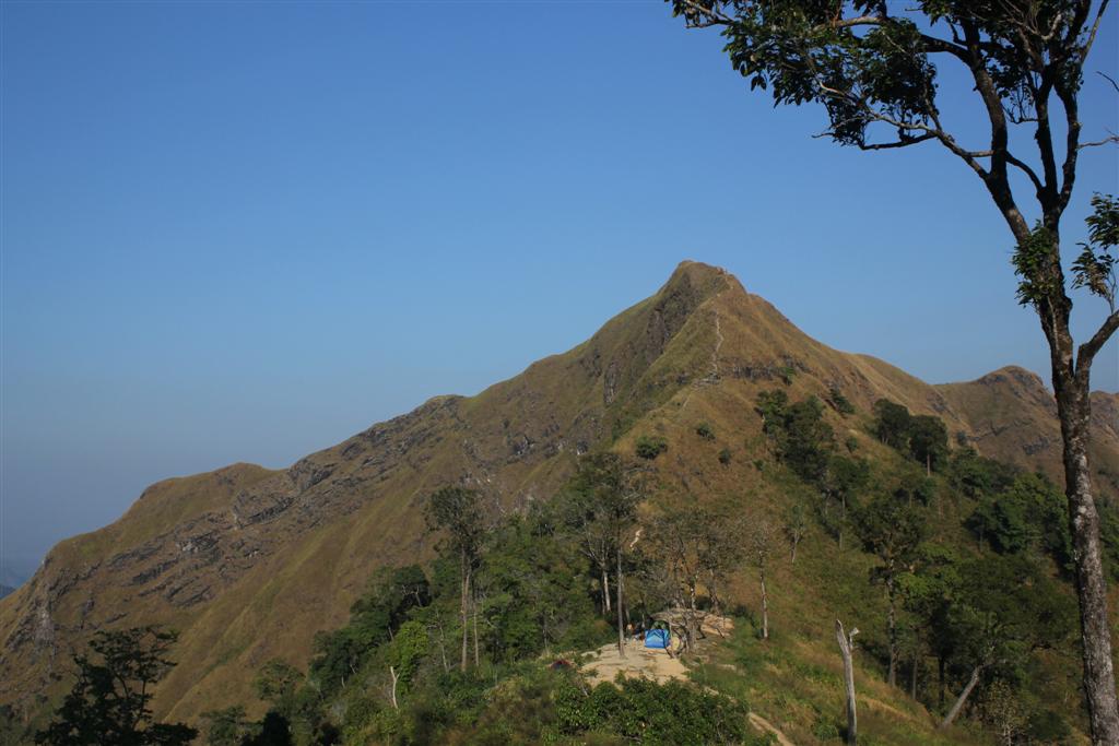 ขึ้นเขาช้างน้อยแล้วมองเห็น ยอดเขาช้างเผือกใด้ตลอดทางเห็นจุดกางเต็นท์ ใกล้ ๆอยู่ในหุบเขา ลานดินโล่งระหว่างเขาช้างน้อยกับเขาช้างเผือก แต่ร้อนมากเลย