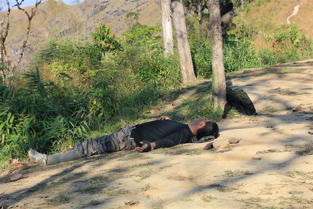 ไปเรื่อย ๆ เหนื่อยก็พัก จุดพัก ใต้ต้น คะเนียง กว่าจะถึงจุดนี้ก็พักมาตลอด 3-4 จุดแล้ว ยังใม่ใด้ครึ่งทางเลย เนื่องจาก จุก