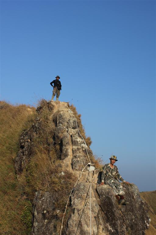 ทางขึ้นเขาช่วงสุดท้าย ก็ยังชันเอาการอยู่ มีเชือก ช่วยแต่เส้นเล็ก ลงเร็วก็แสบมือใด้เหมือกัน