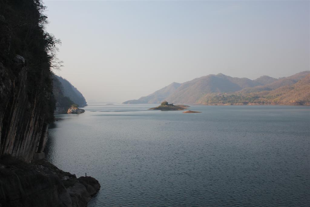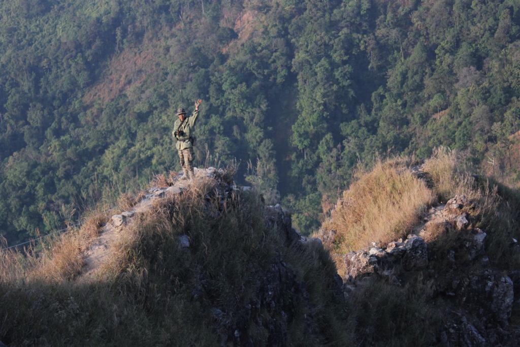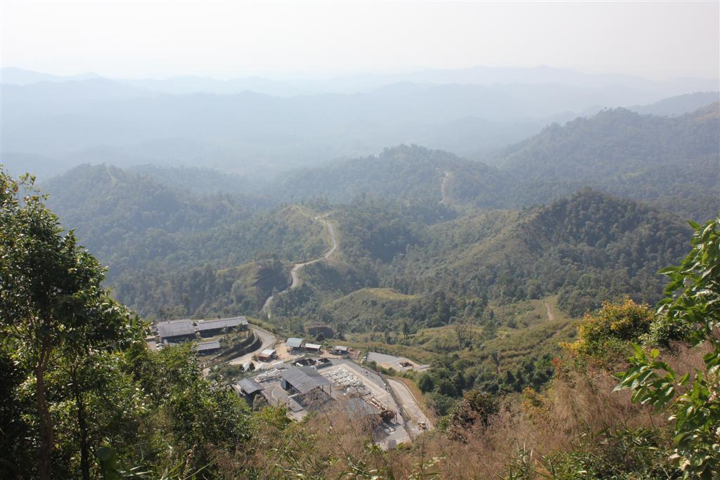 จากจุดนี้เห็น สถานี ควบคุมแก๊ส และเส้นทาง ตามหุบเขา เข้าไปในพม่า
