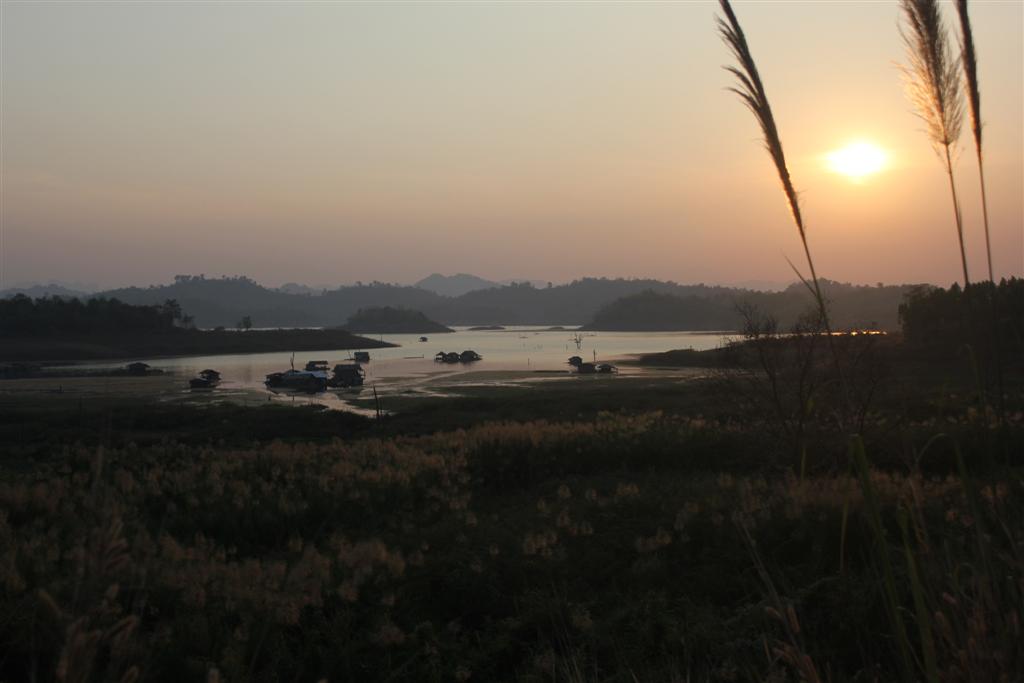 ชมพระ อาทิตย์ตกดิน ทางผ่าน ริมน้ำปลายเขื่อน