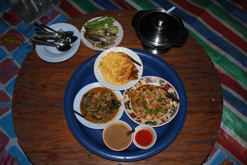กับข้าวง่าย ๆให้พี่หม่อง เจ้าของโฮม สเตย์ทำให้กิน เลยเดินใม่ใหวแล้ว