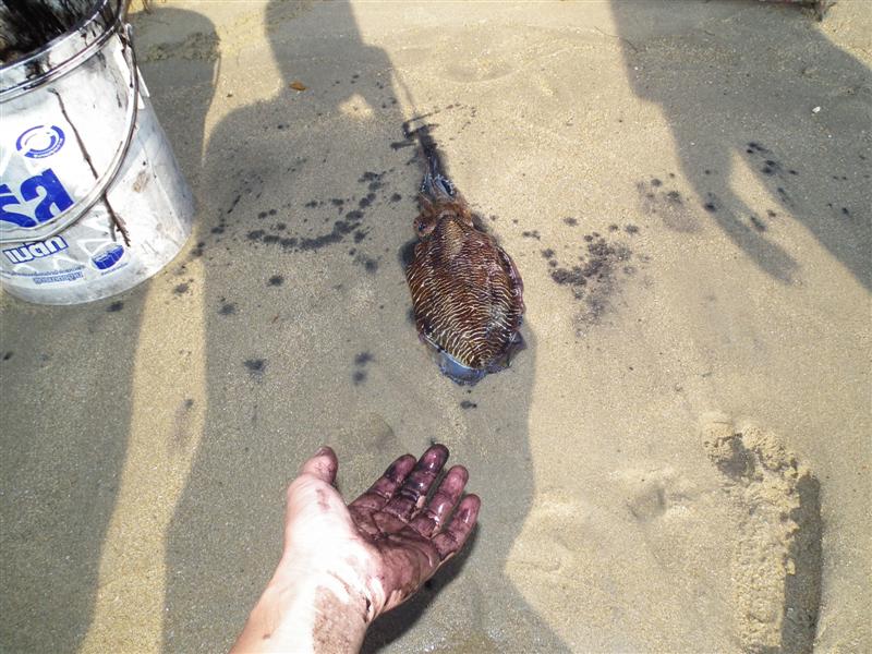 ปลาหมึกกระดองเอาขึ้นมาสดๆ