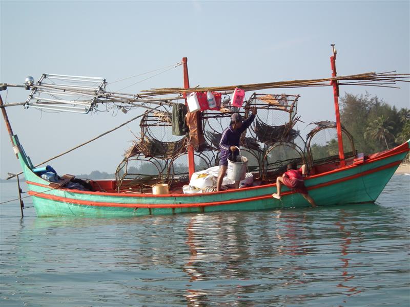 เตรียมขึ้นเรือไปกู้ปลาหมึกขึ้นมาอีกรอบ