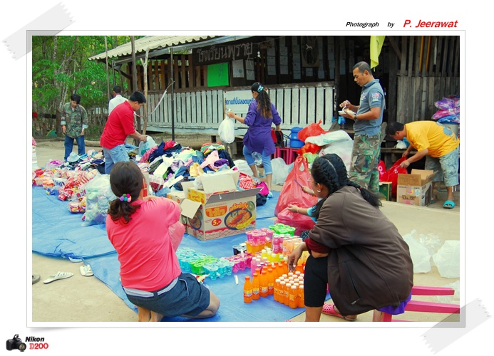 ..แล้วช่วยกันจัดสิ่งของที่จะแจกเด็ก ๆ และชาวบ้าน