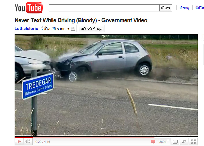 ไปดูคลิ๊ปนี้ แล้วก็ ทำได้เหมือนจริงมาก...ก็ไว้เตือนสำหรับผู้ที่ชอบใช้โทรศัพท์ระหว่างกำลังขับรถ ควรจอดให้เรียบร้อย