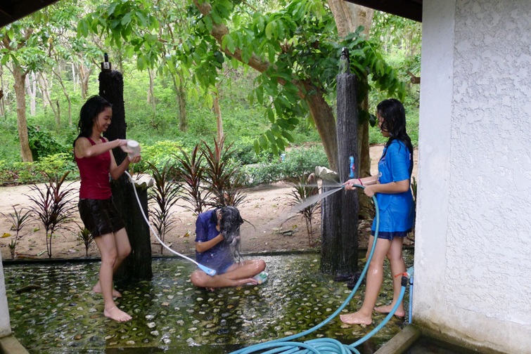 สาวๆอาบน้ำกันสนุกสนาน มีลานล้างตัวสระผมด้านนอกห้องน้ำด้วย