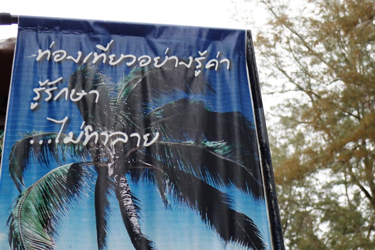 ป้ายต่างๆรอบหาดให้ช่วยกันอนุรักษ์สิ่งแวดล้อม