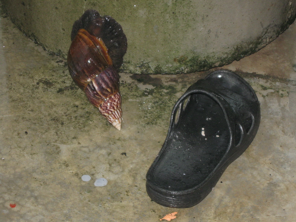 หอยทากยังหนีน้ำเลย ตัวใหญ่มากเทียบขนาดให้ดูกับรองเท้าผม