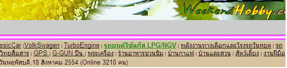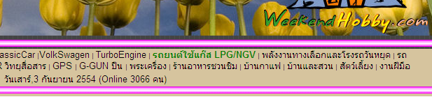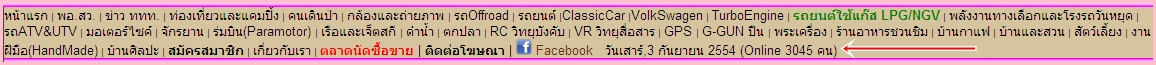 หน้าแรก | พอ.สว. | ข่าว ททท. | ท่องเที่ยวและแคมปิ้ง | คนเดินป่า | กล้องและถ่ายภาพ | รถOffroad | รถยนต์ |ClassicCar |VolkSwagen | TurboEngine | รถยนต์ใช้แก๊ส LPG/NGV | พลังงานทางเลือกและโรงรถวันหยุด | รถATV&UTV | มอเตอร์ไซค์ | จักรยาน | ร่มบิน(Paramotor) |