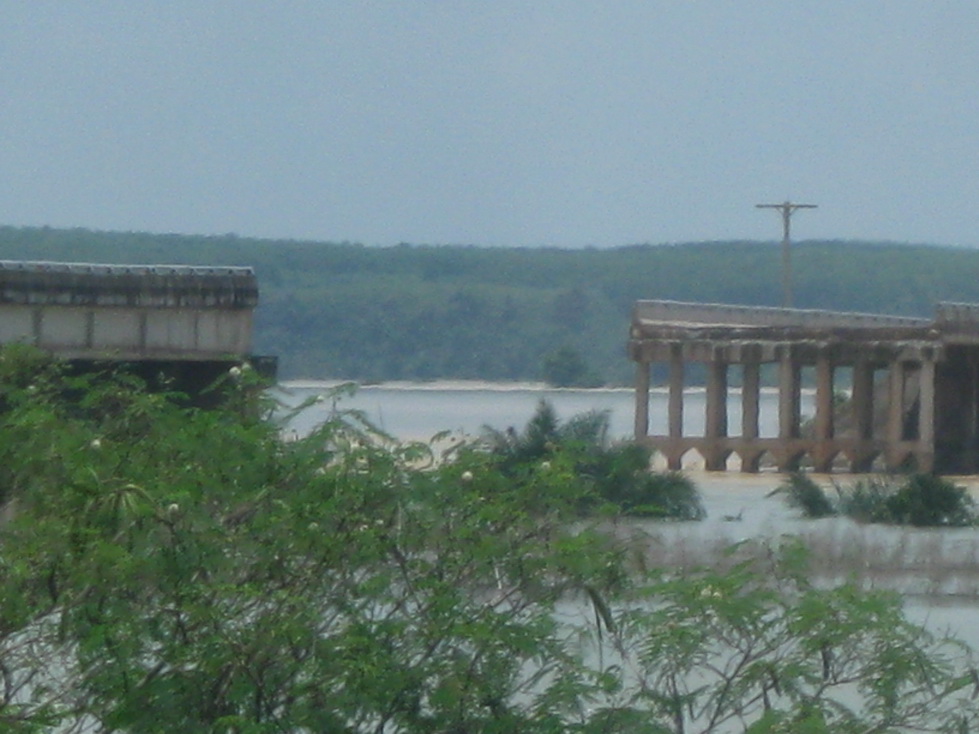 สะพานข้ามแม่น้ำตาปี ขาล่อง พื้นที่ อ.เคียนซา ขาด 2 ช่วง ภาพนี้ช่วงแรก