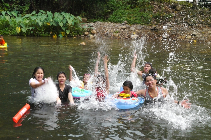 พวกนี้เล่นน้ำตกประจำ กลัวหินบาดเท้าครับป้าแอ๋ว อิ อิ