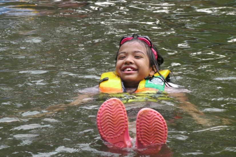 น้องจีนแช่น้ำสบายใจ...พึ่งรู้นะเนี่ย บ้านนี้ว่ายน้ำใส่รองเท้าด้วย เจ๋งมากค่า...