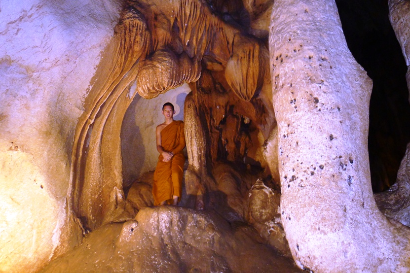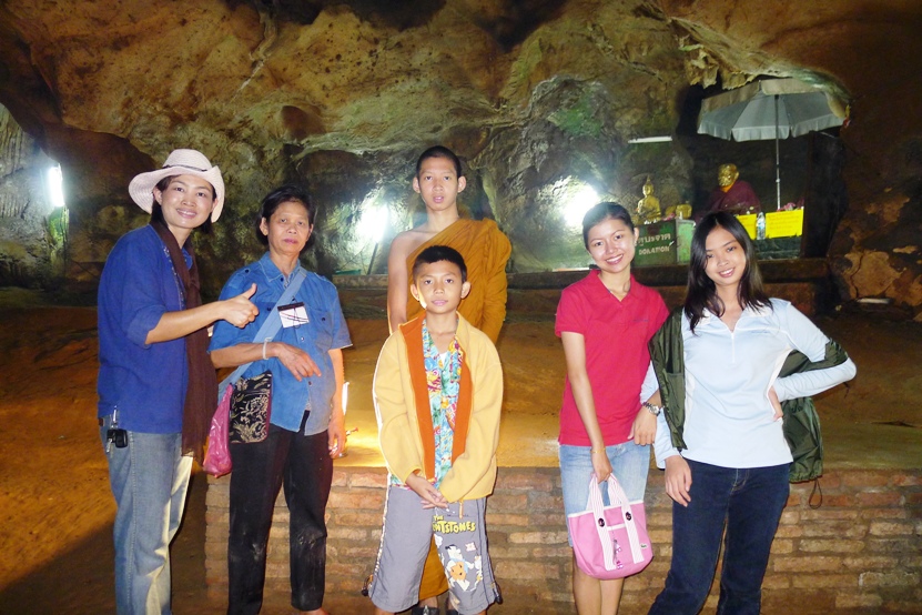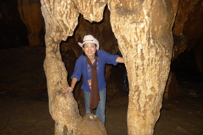 ก่อนออกนอกถ้ำถ่ายรูปกับไกด์เป็นที่ระลึก เป็นชาวบ้านท้องถิ่นชื่อป้าแก้ว