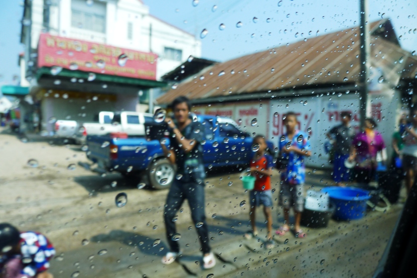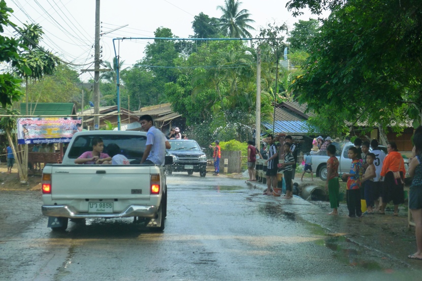 ขึ้นรถกลับบ้านเตรียมรับมือกับด่านสาดน้ำสองข้างทาง