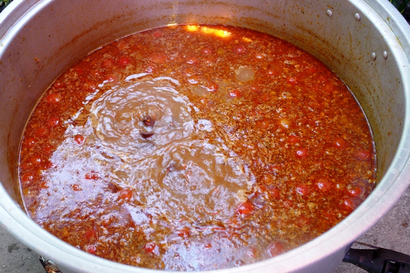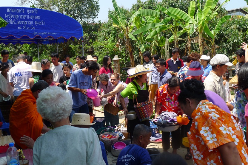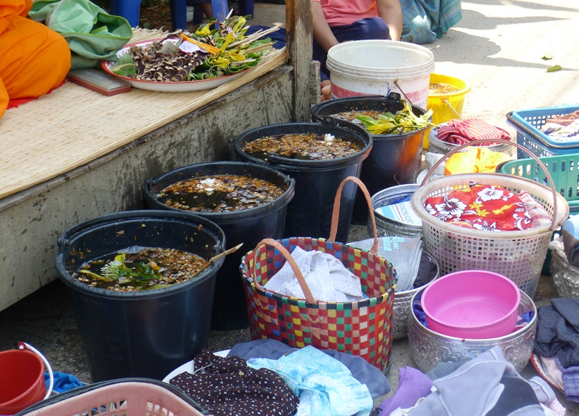 ชาวบ้านตักน้ำส้มป่อยเพื่อนำไปสระผมล้างตัว