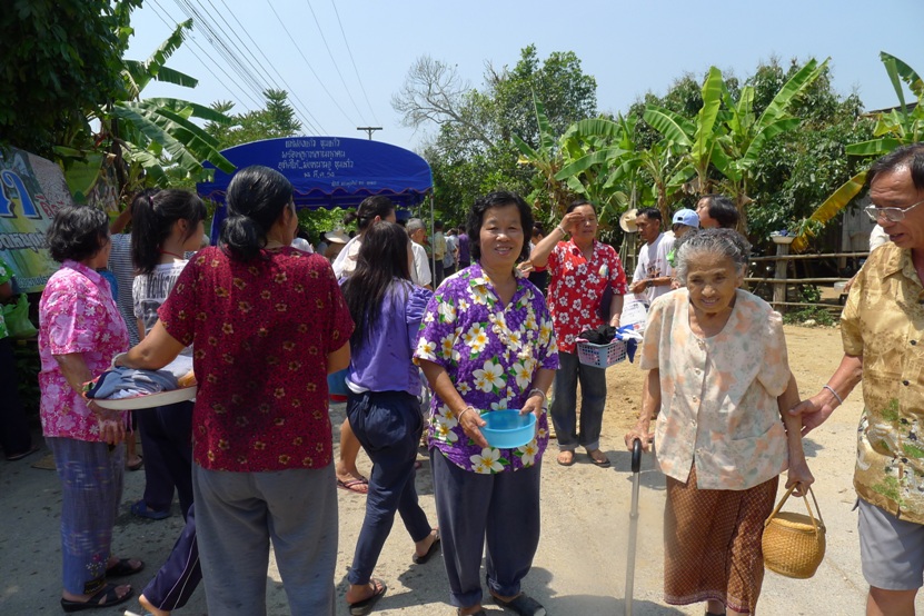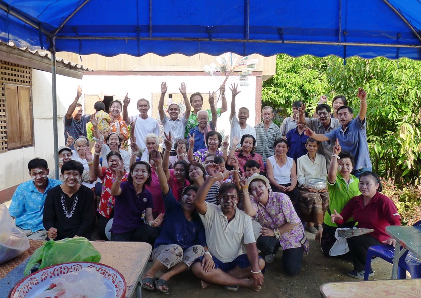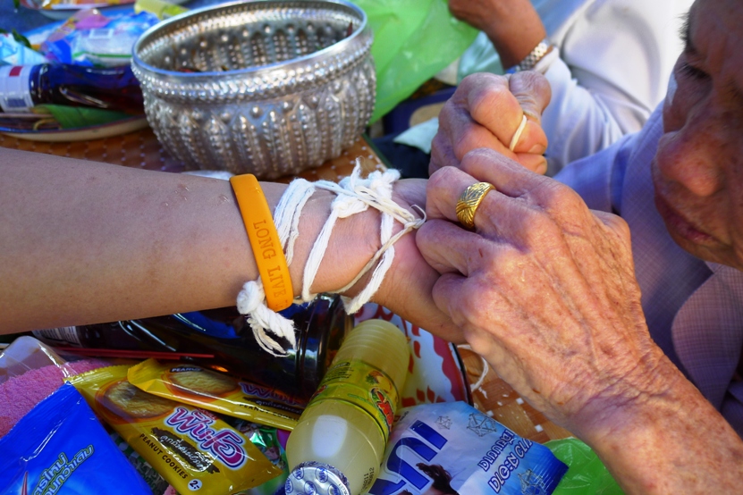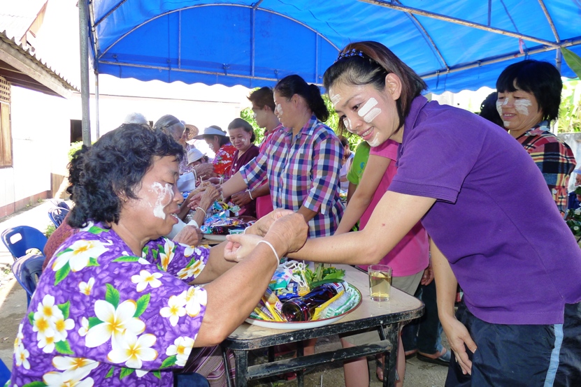 บ่ายๆมีพิธีรดน้ำดำหัวคนเฒ่าคนแก่ และผูกข้อไม้ข้อมืออวยพรลูกหลาน