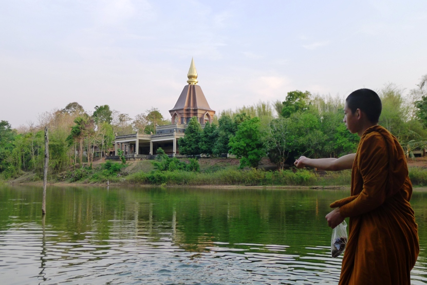 ให้อาหารปลาในสระใหญ่ใกล้เมรุพระอาจารย์หนู