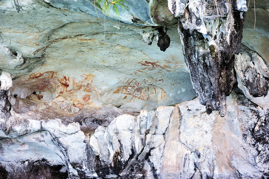 ก่อนจะถึงเกาะต้องผ่านเขาเขียนก่อน เป็นภาพบนฝาผนังน่าจะเป็นฝีมือของมนุษย์ก่อนประวัติศาสตร์ นะครับ (ไม่แน่ใจ)
