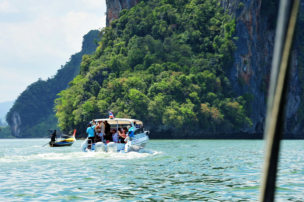 บรรยากาศดีมากครับ อ่าวพังงา วันนี้ไม่มีเหงา มีเรือวิ่งสวนกันไม่เปลี่ยวเลยละครับ ทั้งซ้ายและขวา