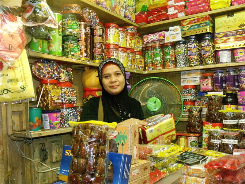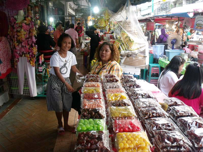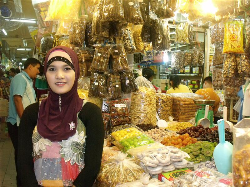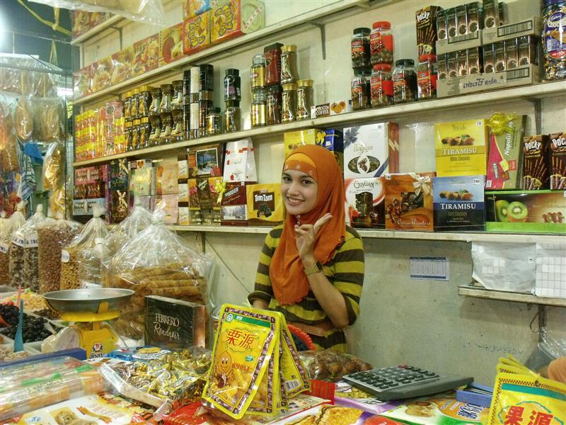 ตลาดกิมหยง แม่ค้าของชั้นล่าง ส่วนใหญ่จะเป็นพี่น้องชาวมุสลิม