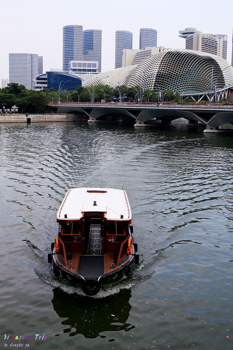 เรือนำเที่ยวล่องแม่น้ำของสิงค์โปร วิ่งมาเข้าทางเราพอดีกำลังรออยู่ครับ
