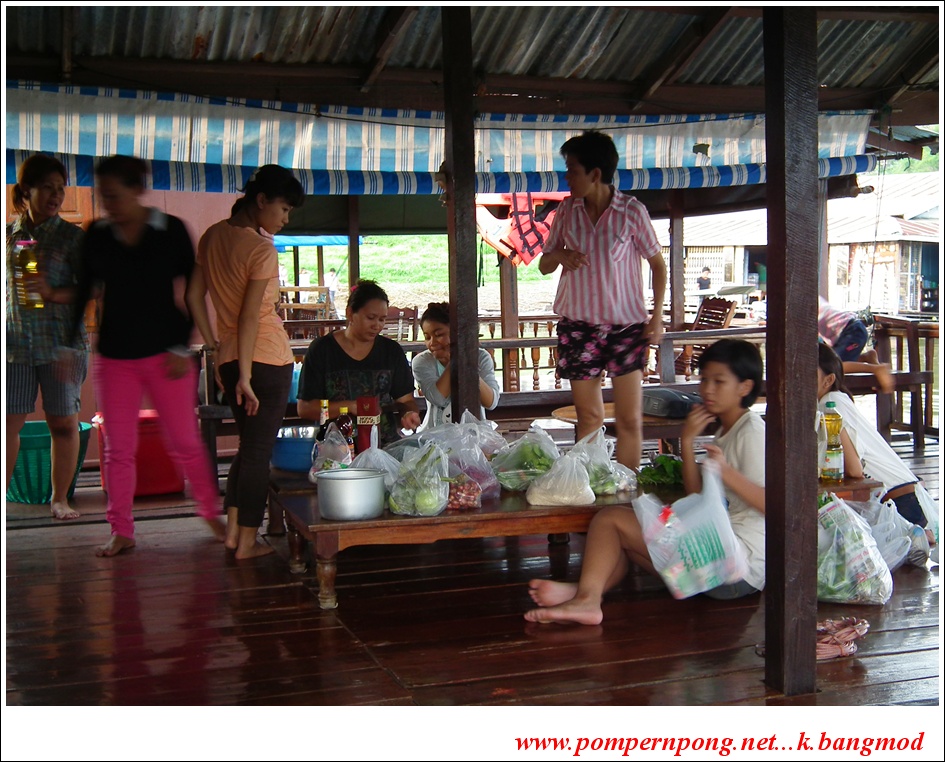 แพที่จองไว้จอดอยู่ใต้สะพานมอญ พอขึ้นแพได้พวกแม่ครัวก็เริ่มทำกับแกล้มกันก่อนเลย ส่วนกับข้าวไว้ทีหลัง