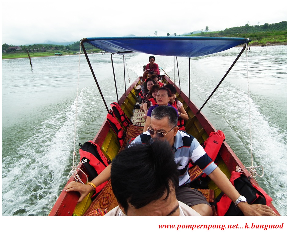 เรือเริ่มลากแพออกจากฝั่งไปแล้ว