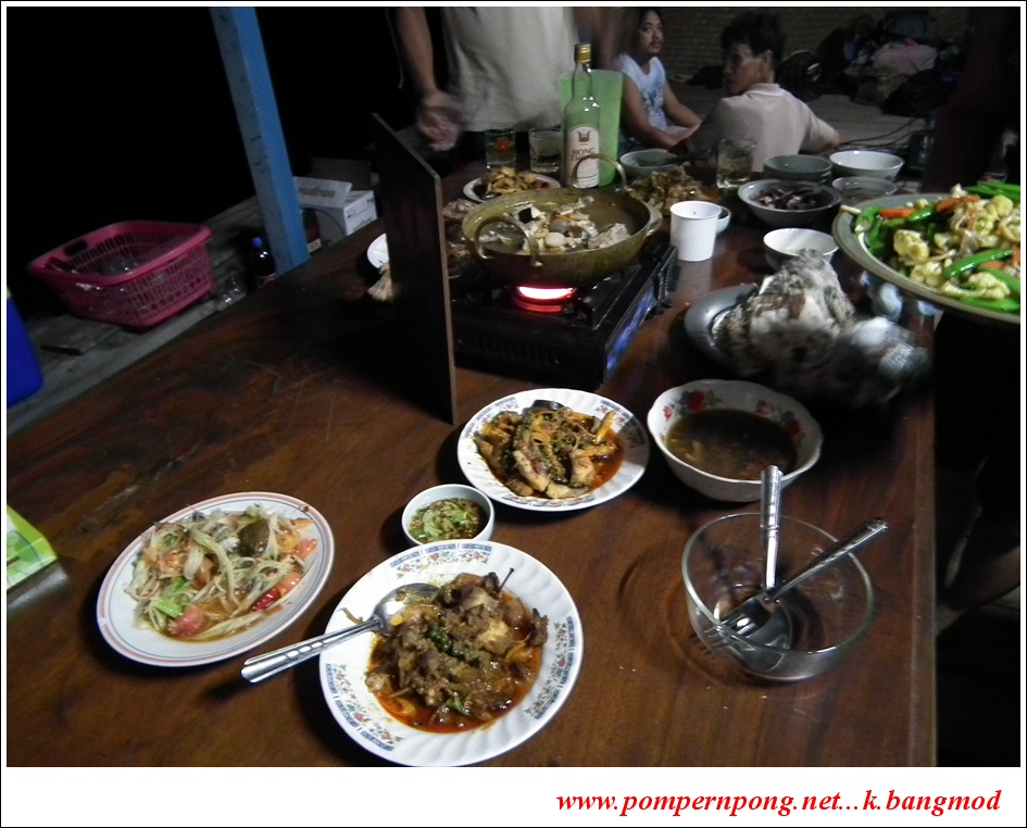 กว่าจะมาถึงแพก็2ทุ่มกว่าๆแล้วเพื่อนๆที่มาถึงก่อนก็ได้ทำกับแกล้มกับข้าวไว้รอแล้ว