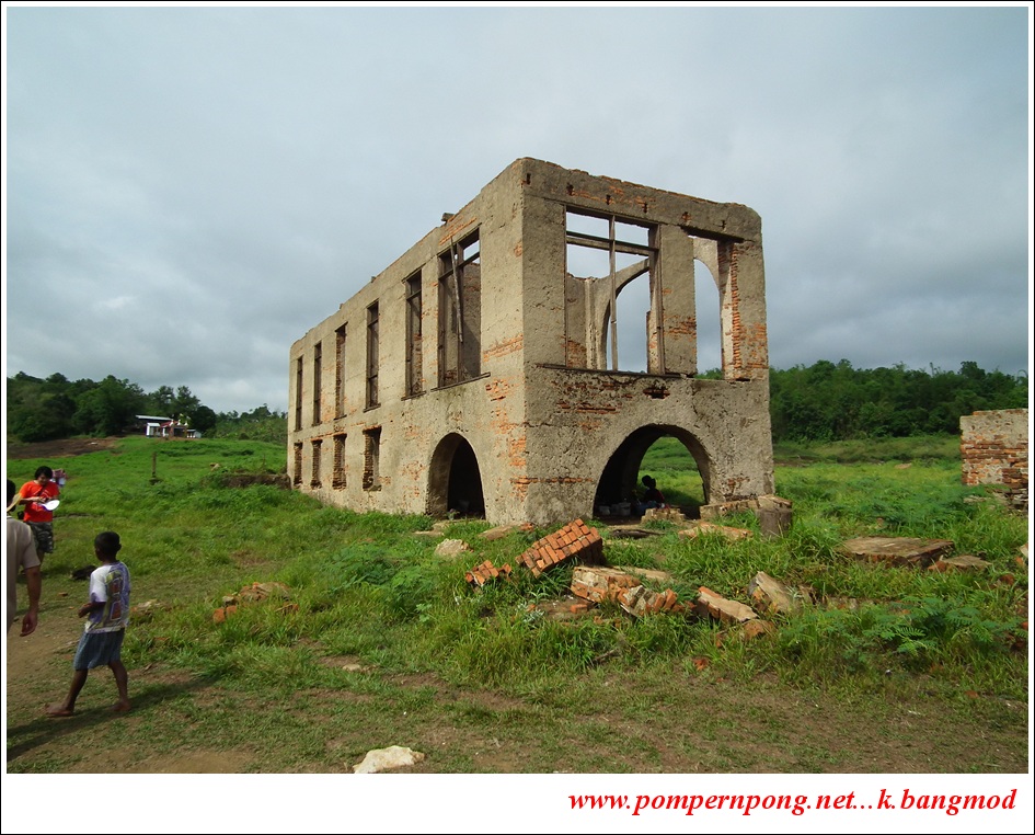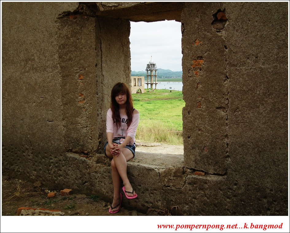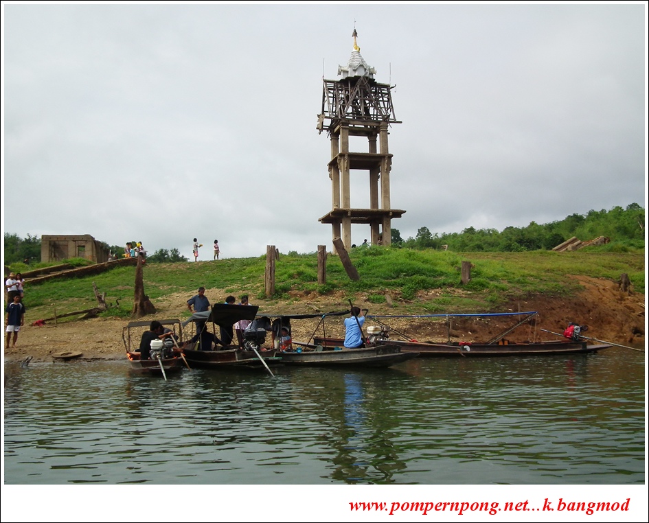 ชาวบ้านบอกว่าถ้าช่วงที่น้ำเต็มเขื่อนน้ำจะท่วมหมดเลยจะเห็นก็แต่ยอดปลายหอระฆัง